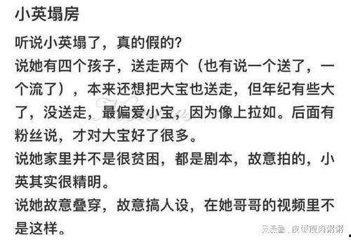 亲爱的读者们,今天我要给你带来一个娱乐圈的热辣大瓜!没错,就是那位在网络上红极一时的网红小英。最近,她被曝出了一些让人震惊的事情,让我们一起来看看吧!